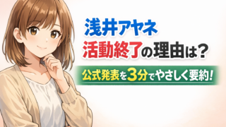 浅井アヤネ 活動終了の発表を見て、「理由は?いつまで?最後に会えるの?」と気になった方へ。この記事では、公式発表で“確定している情報”だけをやさしく整理し噂と混ざって不安になりやすいポイントも丁寧に解説します。2/6の公演や卒業公演の有無、...