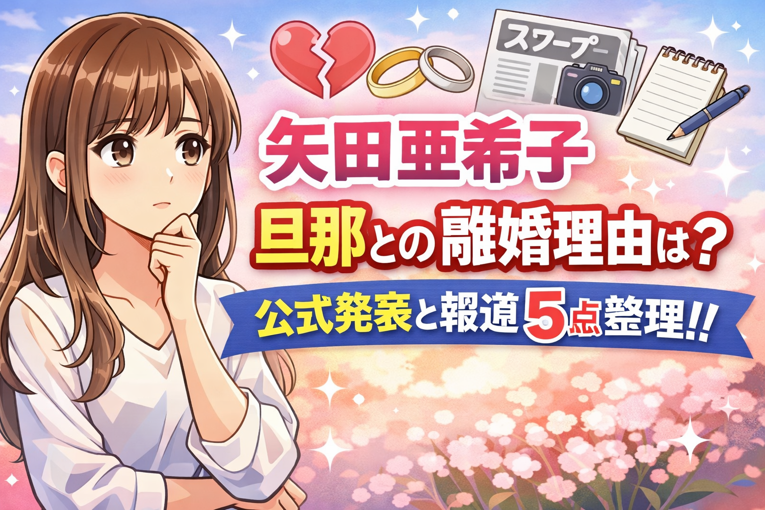 本記事で整理した通り、矢田亜希子 旦那との離婚理由は、本人が詳しく説明したものではなく